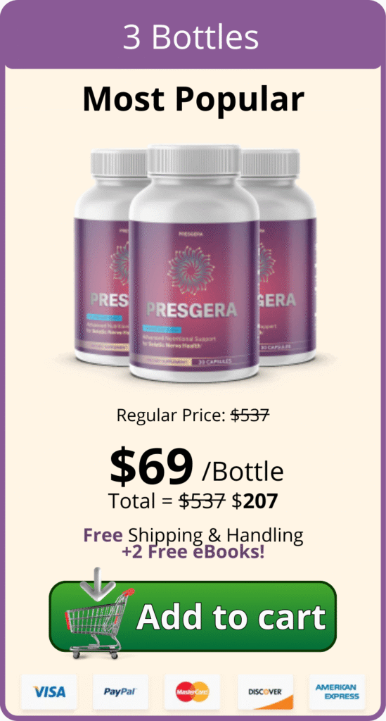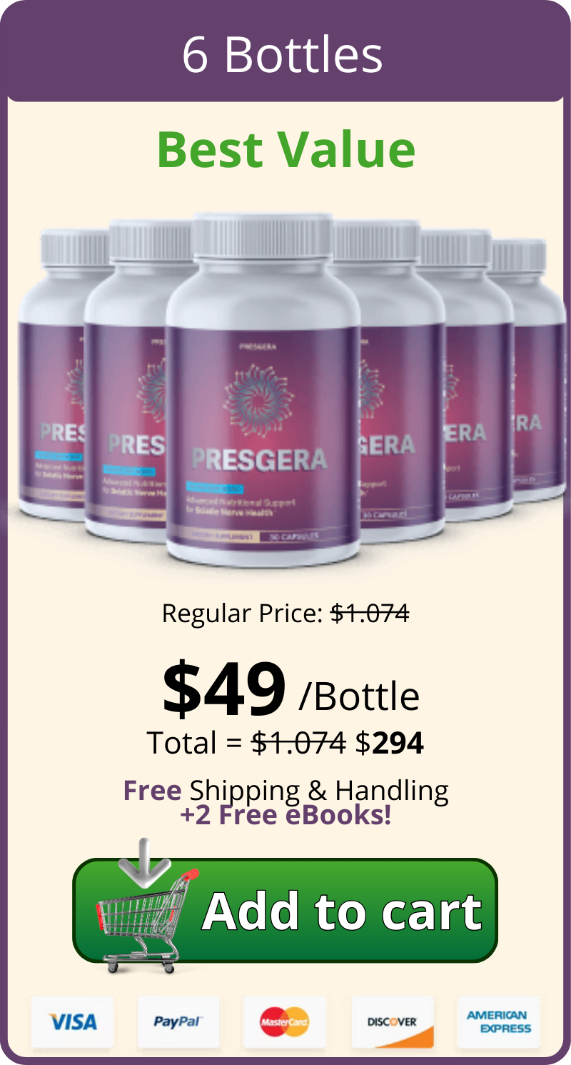 Presgera is formulated to support sciatic nerve health gradually and effectively. Its natural ingredients help boost circulation, ease discomfort, and improve mobility. With a progressive action that works in harmony with the body, it offers safe, lasting benefits.
